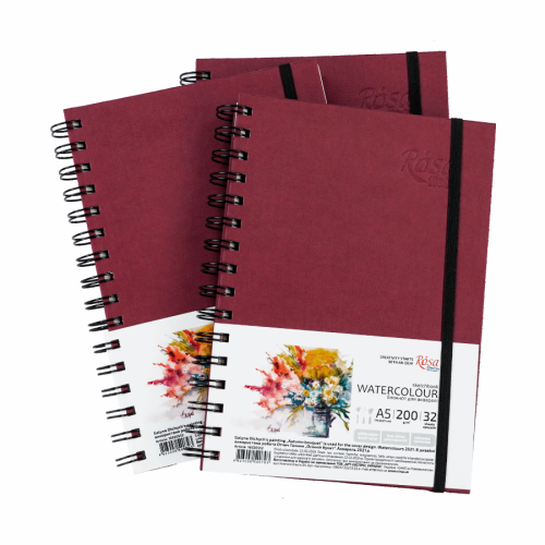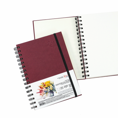 Основные характеристики Блокнот для акварели на спирали Watercolor by Smiltanis, А5, 200 г/м2, 32 л, бумага белая, Бордо, ROSA Studio