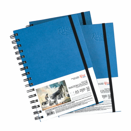 Купить Блокнот для акварели на спирали, Watercolor by Smiltanis, А5, 200г/м2, 32 л, бумага белая, Синий, ROSA Studio - идеальный выбор для художников, студентов и учеников художественных учебных заведений. Этот блокнот имеет удобное соединение спиралью, которое позволяет легко раскрывать и складывать блокнот, а также аккуратно отделять листы благодаря мелкой перфорации. Твердая обложка удерживает листы внутри безопасно, а резинка-фиксатор предотвращает нежелательное открытие блокнота.