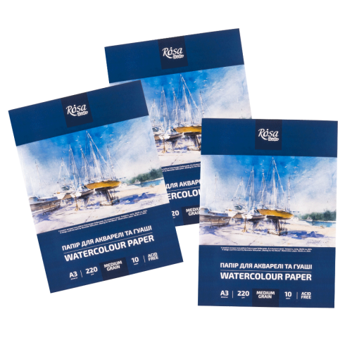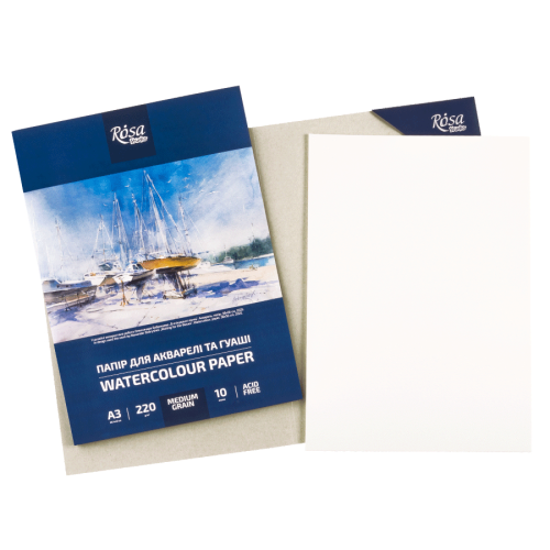 Купить папку бумаги для акварели А3 ROSA Studio 220 г/м² 10 листов среднее зерно на Mir-arta — оригинальная продукция ROSA Studio по лучшим ценам с доставкой в Киев, Львов, Одессу, Днепр, Харьков и любой город Украины.