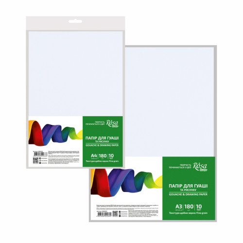 Основные характеристики Бумага для гуаши, пакет А4 (21*29,7 см), 180 г/м2, 10л, Мелкое зерно, ROSA Studio