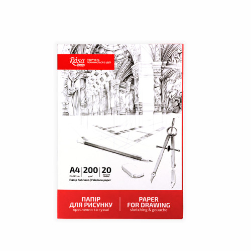 Описание Папка бумага для черчения и гуаши А4 (21х29,7 см), 20л, Мелкое зерно, 200 г ROSA Studio 16921010