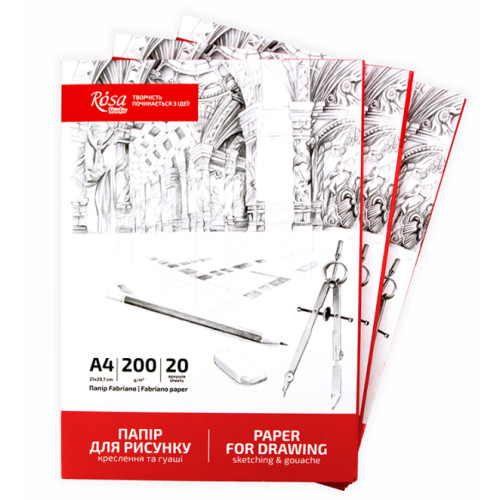 Папки содержат 20 листов формата А4 итальянской бумаги Fabriano. Мелкозернистая текстура, специальная проклейка бумаги и плотность 200г/м – делают ее оптимальной для рисунка и чертежа. На гладкой, слегка шероховатой поверхности бумаги штрихи ложатся четко и равномерно. Бумага подходит для различных техник рисунка – штриховки, растушевки, для работы с графитными палочками.