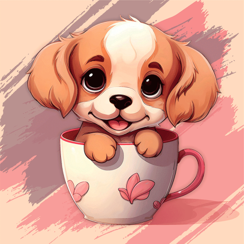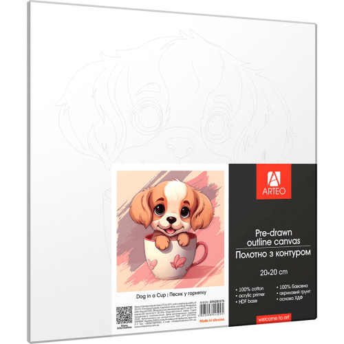 Описание Холст хлопок на ХДФ с контуром Песик в чашке 20x20, акриловый грунт, Arteo