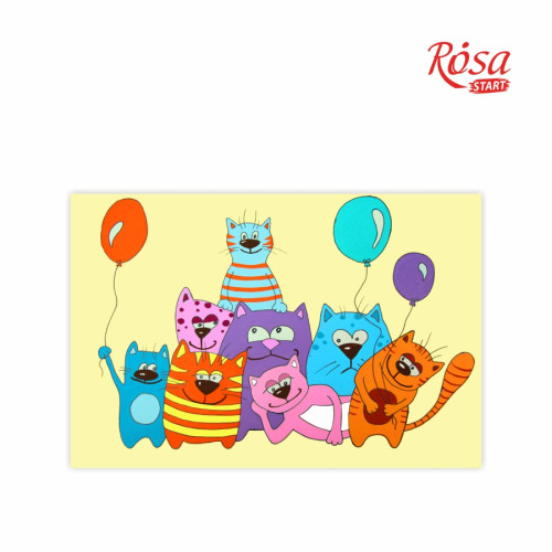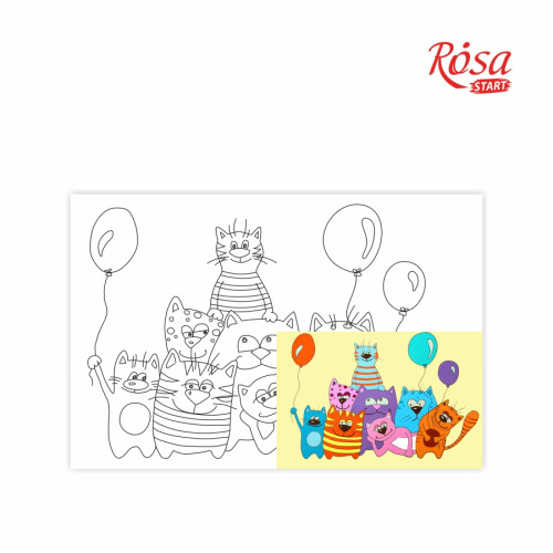 Полотно на картоне с контуром Мультфильм №33 Котики с шариками 20x30, ROSA START — идеальный подарок для юных художников. Закажите в Mir-arta и создайте свою першу картину вже сьогодні!