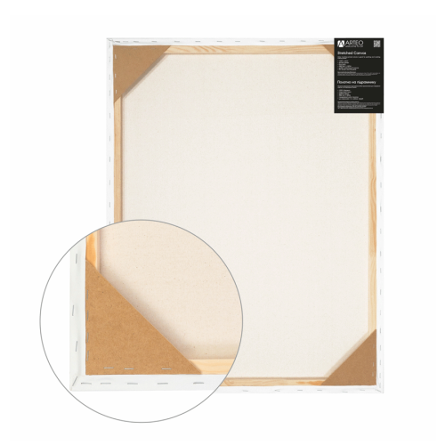 Холст на подрамнике Arteo изготовлен из 100% натурального хлопка плотностью 280 г/м². Он не провисает со временем и сохраняет идеальное натяжение. Мелкозернистая фактура и эластичный акриловый грунт обеспечивают плавное нанесение краски, что делает холст подходящим как для детальной, так и для фактурной живописи.
