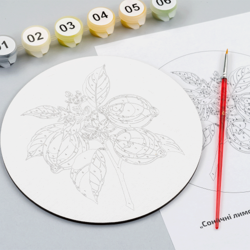 Описание Набор картина по номерам Солнечные лимоны, круглая, Ø15 см, с мольбертом ROSA START