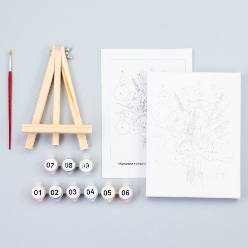 Описание Набор картина по номерам Колосья и маки, 15x20 см, с мольбертом ROSA START