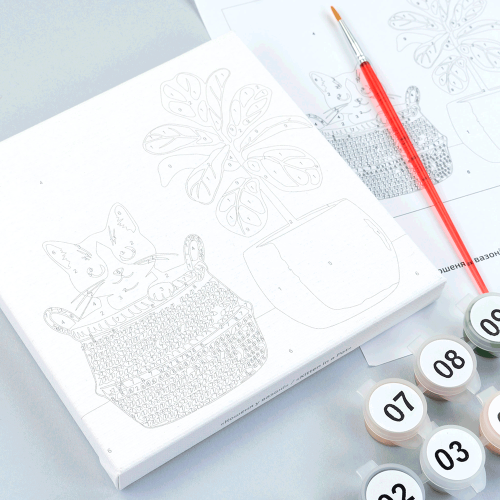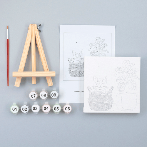 Описание Набор картина по номерам Котенок в вазоне, 15x15 см, с мольбертом ROSA START