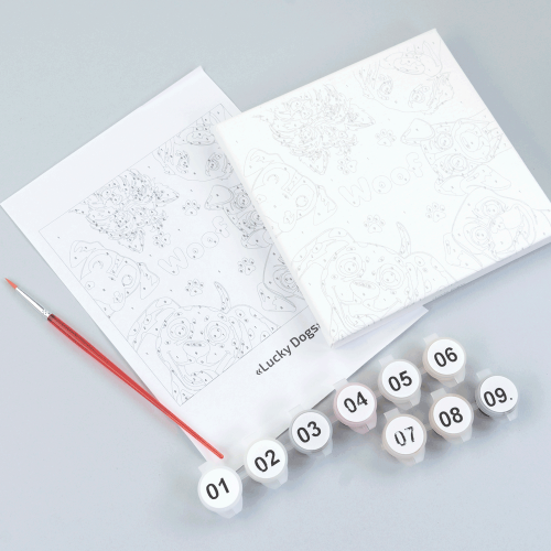 Описание Набор картина по номерам Lucky Dogs, 15x15 см, с мольбертом ROSA START