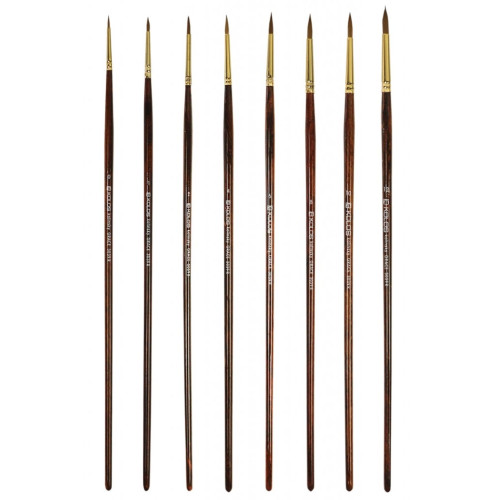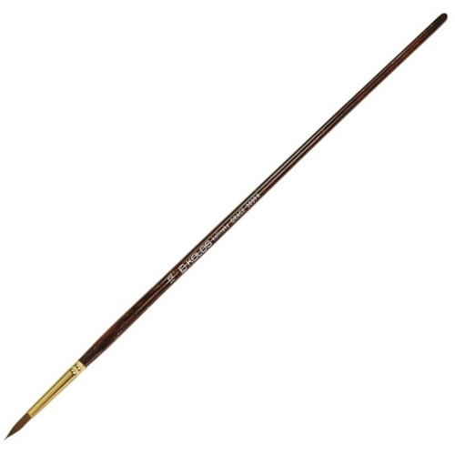 Кисть круглая из волоса колонка. Стандартная выставка рабочей части. Эти кисти отличаются исключительной упругостью и эластичностью при удовлетворительной мягкости они применяются во всех видах живописи и совершенно незаменимы в работе гуашью и акварелью тогда, когда от кисти требуется большая упругость. Предназначается для нанесения краски линией с неизменной толщиной, либо линией, варьирующейся по толщине. Это прекрасная кисть для рисунка, создания фактуры, работы над деталями.