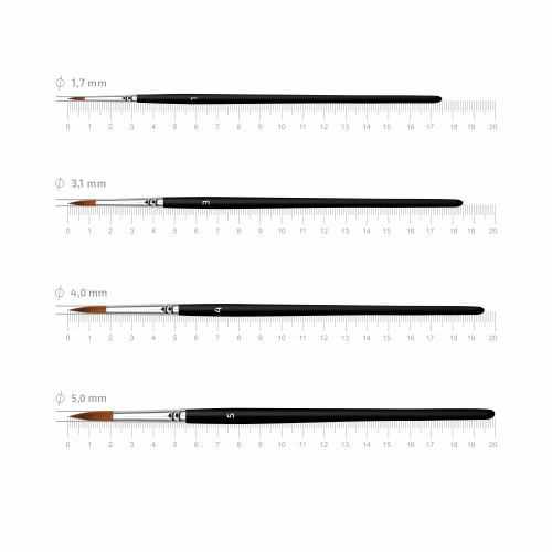 Набор кистей Arteo №2 — сбалансированный комплект из 4 синтетических круглых кистей для акрила, гуаши, акварели и масла. Позволяет выполнять тонкие контуры, детализацию, средние мазки и мягкие переходы без постоянной смены инструментов.