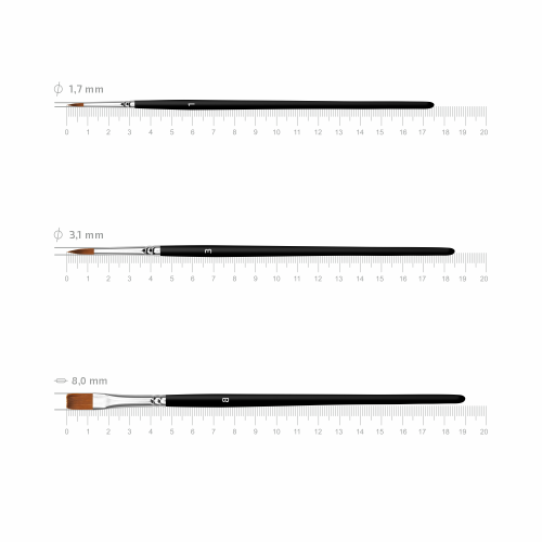 - Круглая кисть №1 — для тонких линий, контуров, орнаментов и мелких элементов