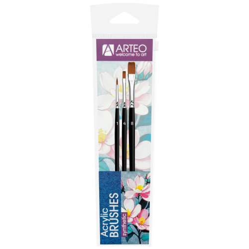 Набор кистей для росписи тканей Arteo №1 — практичный комплект синтетических кистей для работы с акрилом по ткани, текстильным декором и декоративными проектами. Позволяет выполнять тонкие контуры, детализацию и быстрое заполнение больших площадей цветом.