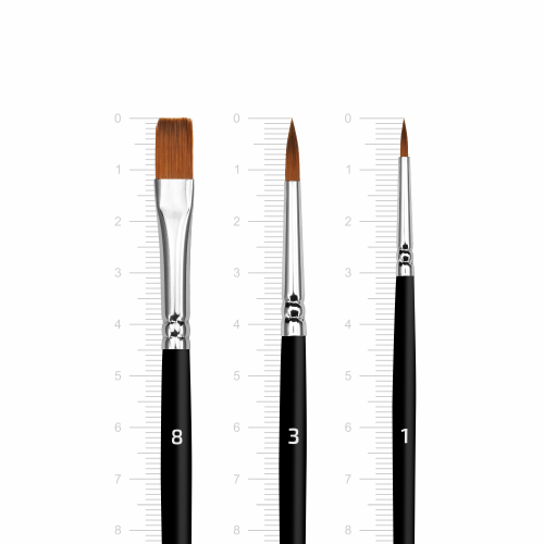 - Плоская кисть №8 — для быстрого закрашивания фона и создания чётких краёв