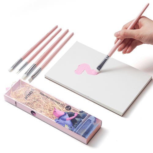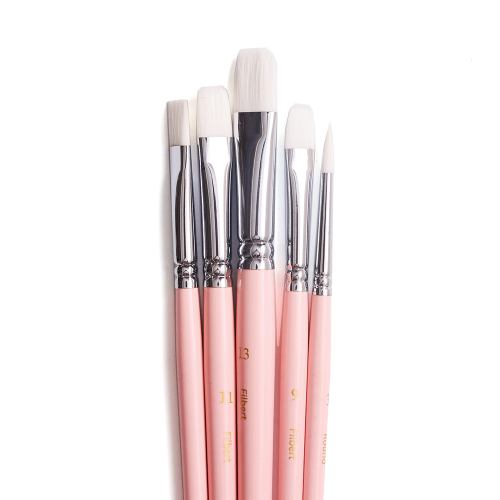 Набор кистей HIMI 5 шт (круглая, плоская и 3 овальные) с розовыми ручками — стильный и универсальный комплект синтетических кистей для живописи, иллюстрации и обучения. Разнообразие форм позволяет выполнять широкий спектр задач: от тонкой детализации и контуров до широких заливок и мягких, плавных мазков.