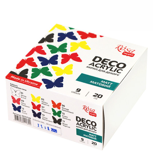 Набор акриловых красок для декора, матовый, 9 цв.*20 мл, ROSA TALENT (90747128)Набор акриловых красок от