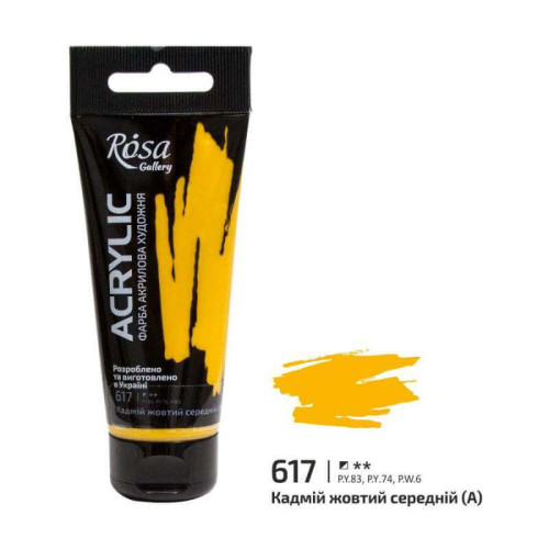 Описание Краска акриловая, Кадмий жёлтый средний, 60 мл, ROSA Gallery
