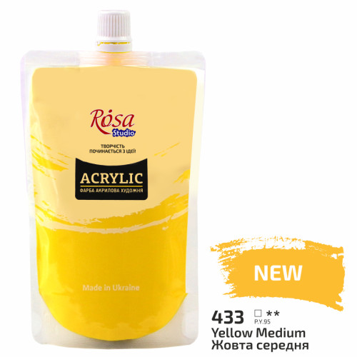 Краска акриловая Желтая середняя 200 мл ROSA Studio