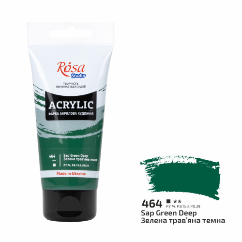 Описание Акриловая краска №464 Зеленая травяная темная ROSA Studio, 75 мл