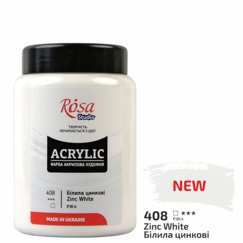 Описание Краска акриловая, Белила цинковые, 400 мл, ROSA Studio (322419408)
