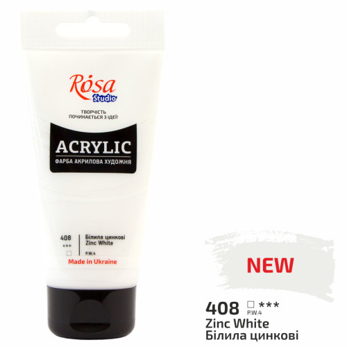 Описание Краска акриловая, Белила цинковые, 75 мл, ROSA Studio