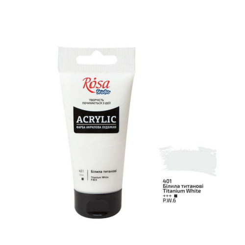 Краска акриловая, Белила титановые, 75 мл, ROSA Studio