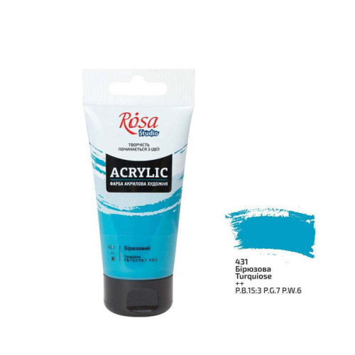 Описание Краска акриловая, Бирюзовая, 75 мл, ROSA Studio