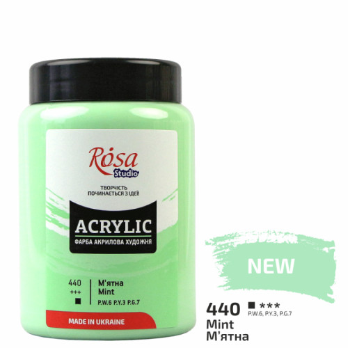 Краска акриловая, Мятная, 400 мл, ROSA Studio (322419440)Акрил художественный ROSA Studio – качественные краски для тех, кто осваивает живопись и декоративно-прикладное искусство.