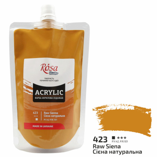 Краска акриловая, Сиена натуральная, 200 мл, ROSA Studio (323200423)Художественные краски ROSA Studiо в объеме 200 мл - хорошее решение для работы в студиях, учебных заведениях. Больший объем красок и удобство распределения краски из одной тары на палитры для каждого ученика, именно то, что нужно для комфортной организации процесса обучения.Упаковка софт-пак с дозатором герметично закрывается, что гарантирует длительное и надежное хранение продукта. Дозатор позволяет удобно выжимать краску и распределять между учениками в студии и на пленэре. Упаковка является компактной, что позволит сэкономить место в сумке при переноске. Прочное, плотное упаковки сохранит краски от повреждений при падении или транспортировке.Художественные краски ROSA Studiо в объеме 200 мл - это: Оптимальный объем краски Удобная упаковка с дозатором Герметичный пакет с контролем вскрытияАкрил художественный в фасовке 200 мл- оптимальное количество краски для работы на пленэрах, с большими форматами картин или росписи стен. Насыщенные цвета акрила легко смешиваются и образуют новые оттенки Благодаря оптимальной вязкости краски, в работе можно использовать различные инструменты (кисти, мастихины и т.д.) Легкий блеск после высыхания добавляет акриловым краскам своеобразного шарма