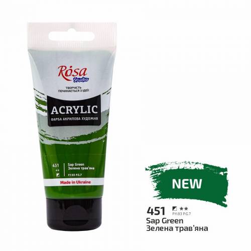 Описание Краска акриловая, Зеленая травяная (451), 75 мл, ROSA Studio