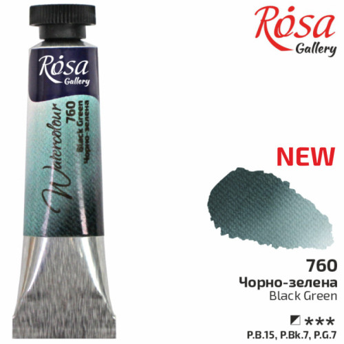 Описание Краска акварельная, Черно-зеленая, туба, 10 мл, ROSA Gallery (3211760)