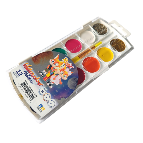Набор акварельных красок с кистью 12 шт, Rudix