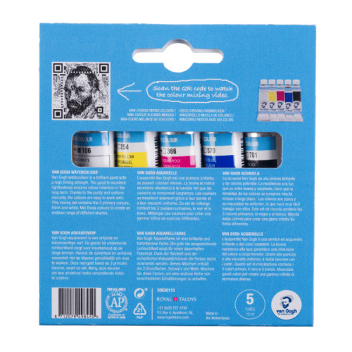 Набор акварельных красок VAN GOGH PRIMARY содержит 5 тюбиков акварельных красок (3 базовых цвета, а также черный и белый). Смешивайте эти цвета, чтобы создать бесконечную палитру оттенков. Набор также содержит брошюру с информацией о смешении цветов и QR-код, который ведет вас на веб-сайт Talen's для получения дополнительной информации и подробного видео.Краски этого набора высокопигментированы, с превосходной тонировочной силой. Они просты в использовании и светостойки. Подходят для новичков, студентов и специалистов.Цвета в наборе: 106, 254, 366, 570, 701