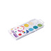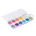 Особенности набора включают упаковку в практический пластиковый футляр с белым дном и прозрачной крышкой, вместе с кистью. Цвета являются чистыми и прозрачными, легко растворяются в воде и набираются на кисть. Акварель хорошо растекается на бумаге, быстро высыхает и легко смывается водой. Изготовлено на основе натуральных связующих и безопасных для детей пигментов.