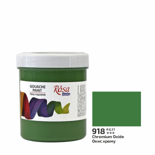 Краска гуашевая, Окись хрома, 100мл, ROSA Studio (3230918)Гуашь художественная ROSA STUDIO- отличное решение для тех, кто осваивает живопись и декоративно - прикладное искусство.Свойства:- Гуашь высокопигментированная - имеет хорошую покрывную способность;- Цвета насыщенные даже после высыхания - не светлеют;- Краски легко смешиваются и не дают грязи (при смешивании до 3-х цветов);- Благодаря кремовой консистенции краска ложится на поверхность равномерным слоемГамма: 30 базовых цветов, которые позволяют получить новые оттенки при смешивании.Доступные в банках:40 мл - все цвета;100мл - 28