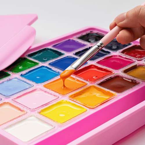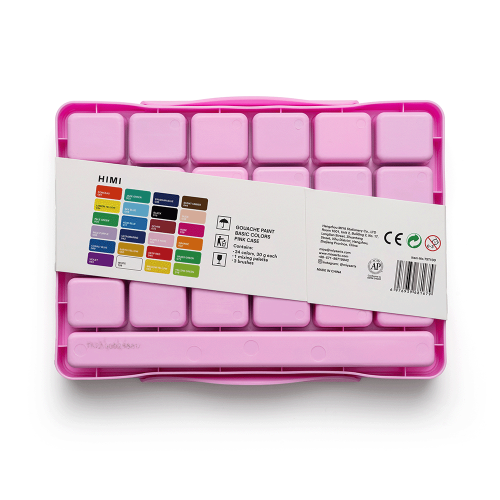 Описание Набор гуашевых красок HIMI Jelly Cup 24x30 мл, 3 кисти, розовый пластиковый пенал