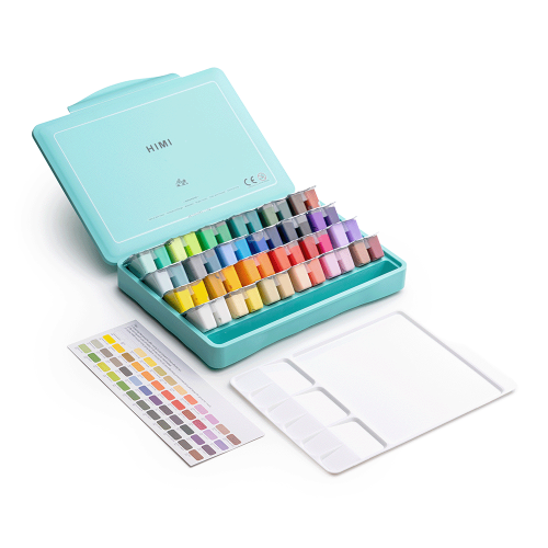 Гуашь HIMI имеет кремовую желеподобную текстуру, высокую пигментацию и отличную укрывистость. Краски легко смешиваются между собой, хорошо наносятся и после высыхания образуют красивый матовый бархатистый слой. При необходимости их можно повторно активировать водой. Большой выбор оттенков и удобный формат делают набор особенно практичным для длительной работы и обучения.