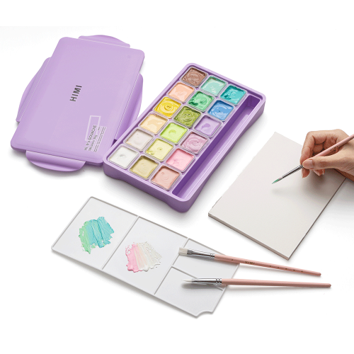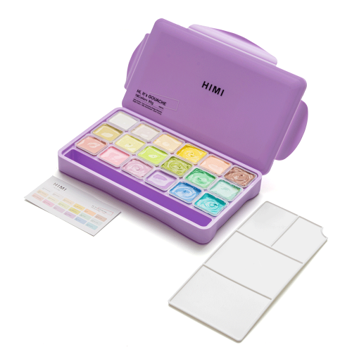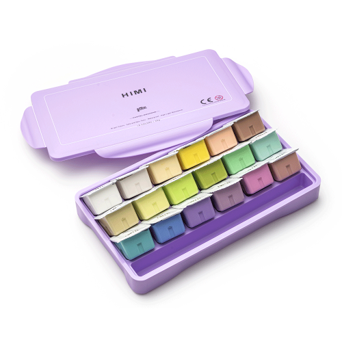 Гуашь HIMI с пастельными оттенками сохраняет унікальну кремову текстуру, легко змішується та забезпечує рівне покриття навіть у світлих тонах. Завдяки формату Jelly Cup фарби не висихають і завжди готові до роботи, а зручний пластиковий пенал робить набір практичним для студії, навчання чи подорожей.