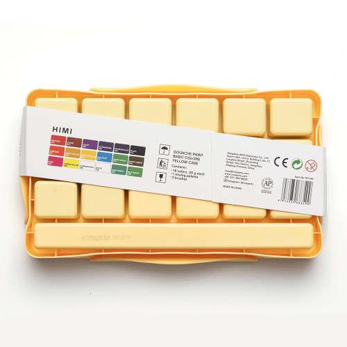Набор гуашевых красок Jelly Cup 18×30 мл, жёлтый пластиковый пенал, HIMI