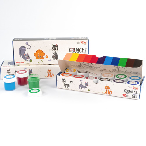 Описание Набор красок гуашевых Cats 12*10 мл, ROSA Kids