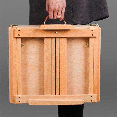 Мольберт настольный французского типа SINOART с лотком из натурального бука (42×38×41,5(91) см, высота полотна до 86 см) — функциональное и компактное решение «2 в 1». Он совмещает полноценный мольберт и удобный рабочий кейс с вместительным лотком для хранения красок, кистей и аксессуаров прямо во время работы.