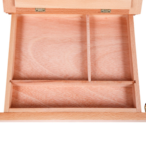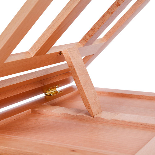 Мольберт настольный каркасный SINOART из натурального бука с ящиком (33,5×26×5(28) см) — компактный и функциональный мольберт для работы за столом. Он сочетает удобную опору для бумаги, планшета или небольшого полотна с встроенным ящиком для хранения кистей, карандашей, ластиков и других мелочей. Благодаря качественному буку мольберт устойчив, долговечен и имеет приятный натуральный вид.