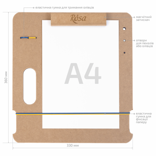 Описание Планшет с магнитным зажимом А4 (33х36см), МДФ, ROSA Studio