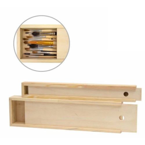 Пенал для кистей деревянный ПК - простой и удобный деревянный ящик для хранения и транспортировки кистей, карандашей, маркеров, угля и других мелких художественных материалов.