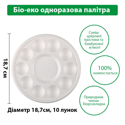 Описание Палитра SINOART, бамбуковая, биоразлагаемая, диаметр 18,7 см, 10 лунок, 10 шт в упаковке