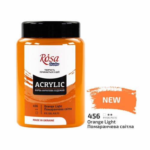 Опис Акрилова фарба №456 Оранжева світла ROSA Studio, 400 мл