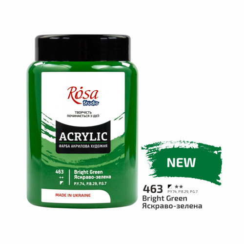 Опис Акрилова фарба №463 Яскраво-зелена ROSA Studio, 400 мл