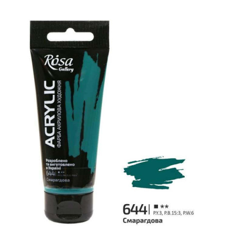 Нова та перша Українська Фарба акрилова, Смарагдова, 60 милі літрів, ROSA Gallery для професіоналів живопису, дизайнерського та декоративно-ужиткового мистецтва. Виготовлялася спільно знаменитими художниками та відомим виробником України, відповідаючи всім нормам європейської сертифікації. Має індивідуальну формулу складу кожного кольору. Задіє в ньому тонкодисперсний пігмент відмінної якості з високим рівнем світлостійкості. Містить його у високій концентрації. Як сполучна – виступає водна високопроцентна акрилова емульсія. Фарба - Покривна. Немає вираженого запаху. Працює легко та професійно. Може бути використана на щільних поверхнях різних виробників. Вирізняється постійністю кольору-змістовності, яскравості, чистоти та виразності. При кольоро-змішуванні та розбілах – проста і зручна. Використовує для цього воду або медіуми. За допомогою сучасних уповільнювачів – створює додатковий часовий інтервал для внесення правок та доопрацювань. Сучасний Художній Акрил РОСА Gallery - вигідна, ефективна та чудова покупка, що пропонує професійне виконання робіт на високому рівні та за прийнятну ціну.