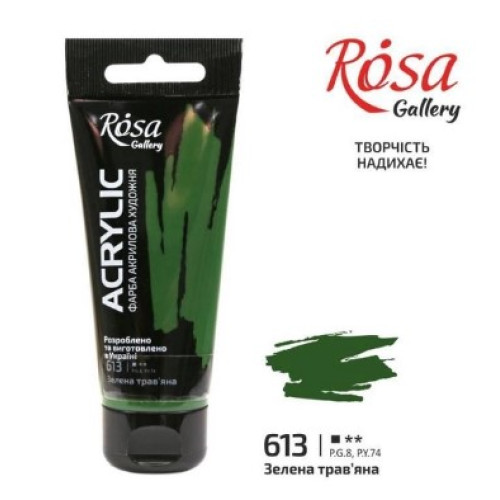 Основні характеристики Фарба акрилова, Зелена трав'яна (613), 60мл, ROSA Gallery