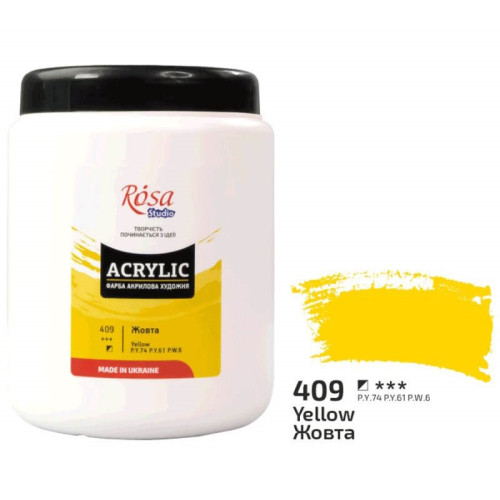 Основні характеристики Фарба акрилова, Жовта, 1000 мл, ROSA Studio 322001409